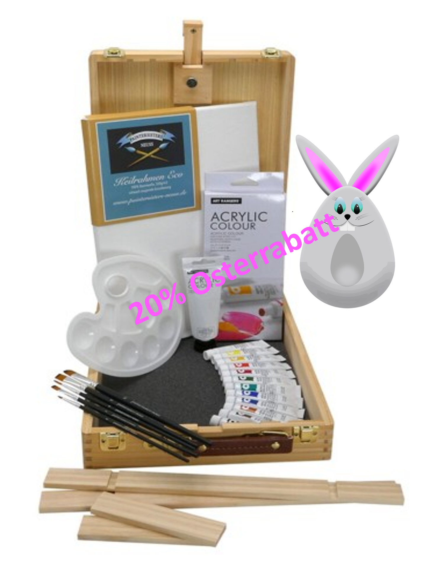 Ein komplettes Malset für den Start in das Acrylmalen. Der Koffer ist gleichzeitig Tischstaffelei und kann mit vielen weiteren Kreativprodukten bestückt werden.