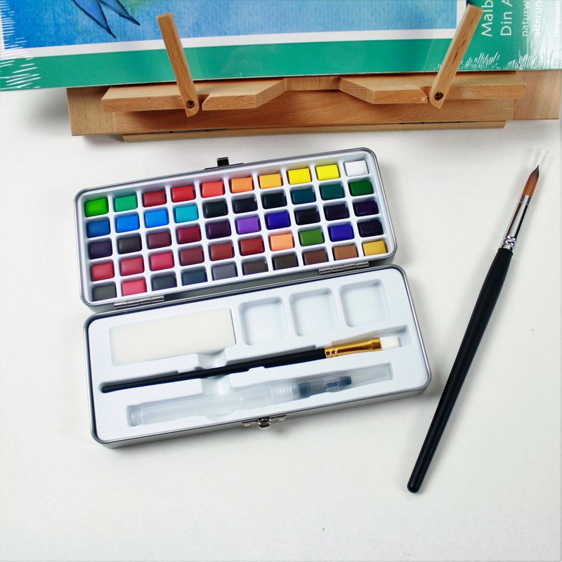 Aquarellkasten mit 50 Farben, Wassertankpinsel und Nylonpinsel Gerade