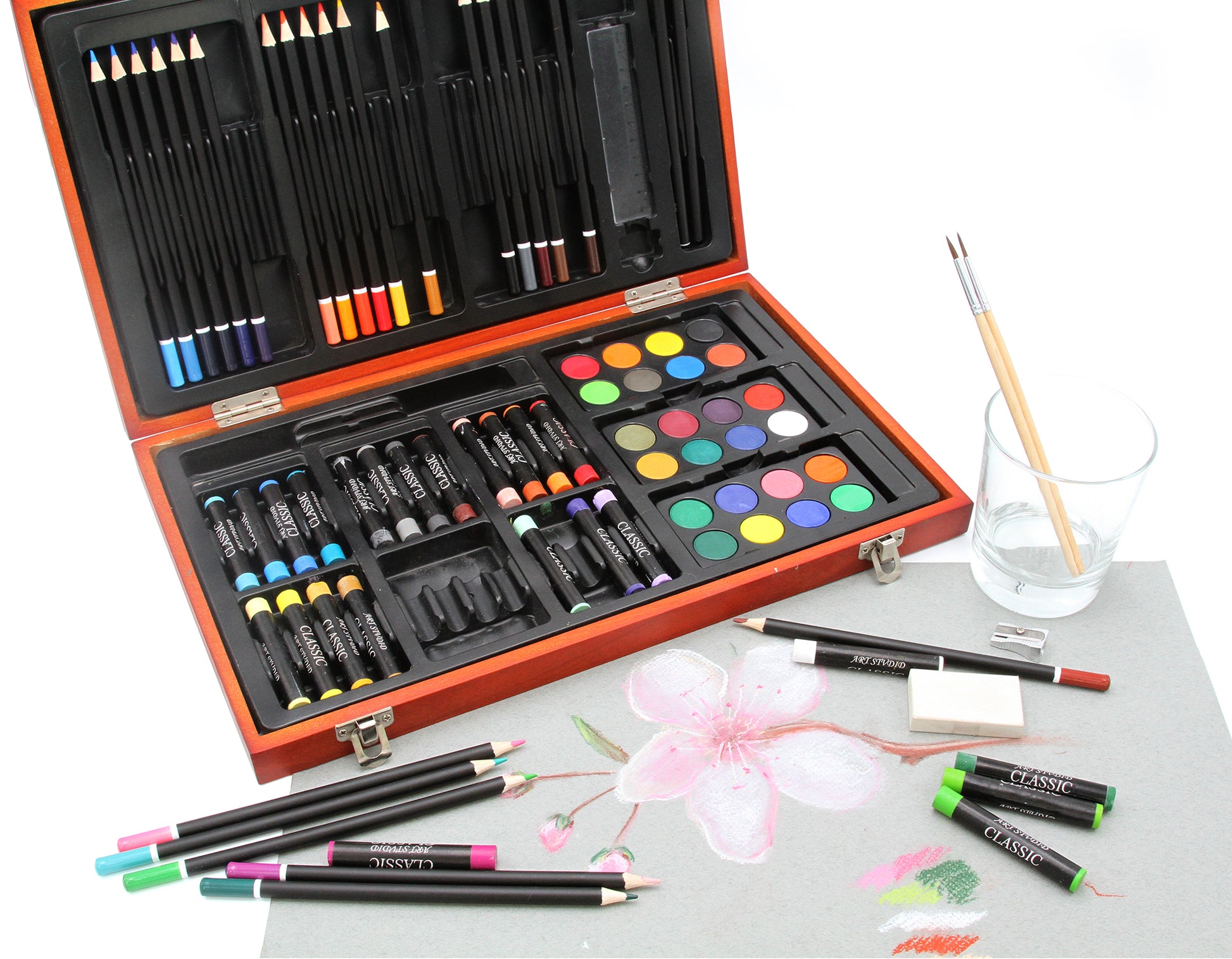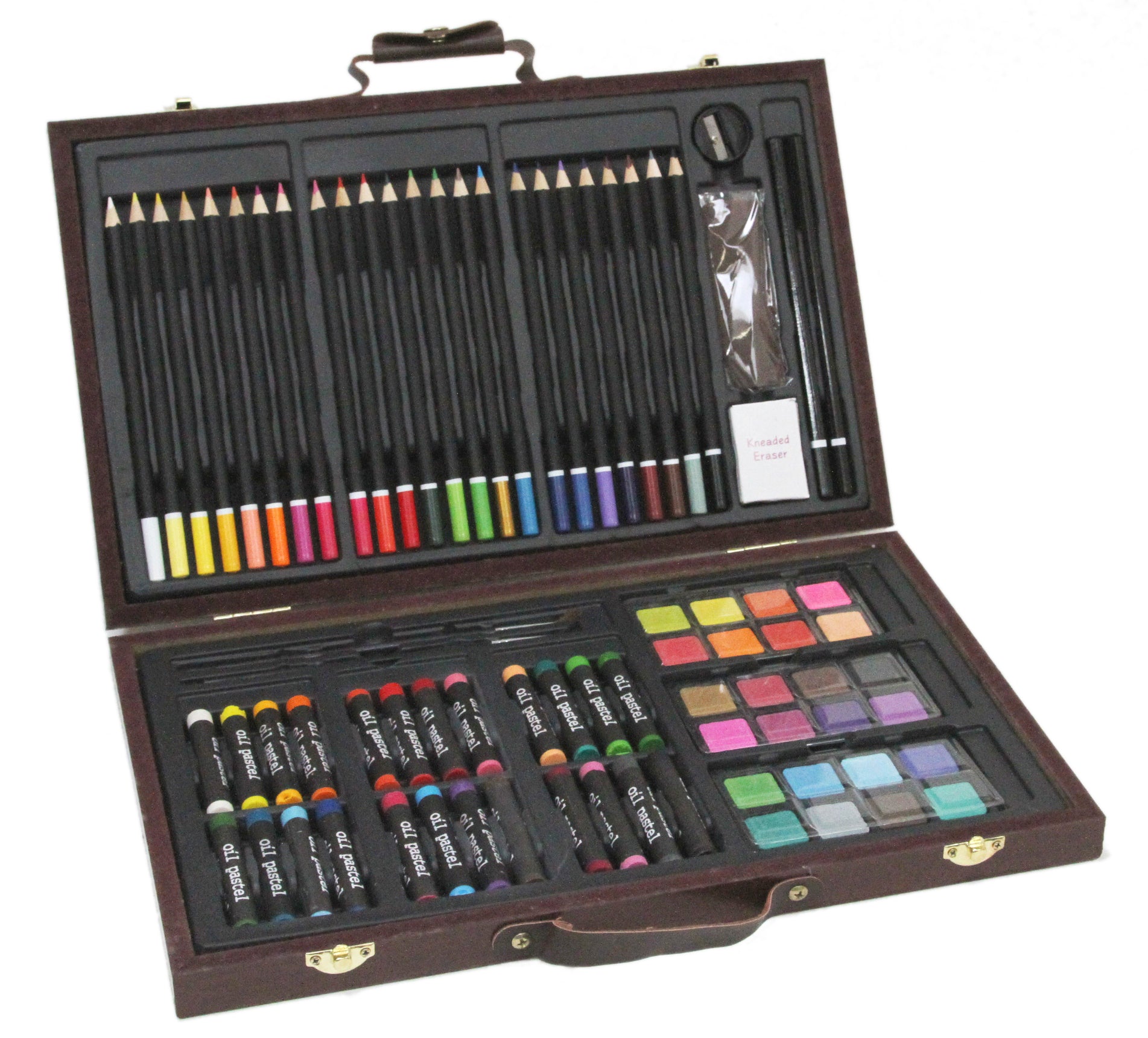 Vielseitiges Starter-Malset für kleine und grosse Künstler. Alles sauber verpackt im schmucken Holzkoffer für einfache Aufbewahrung und schnellen Zugriff. 78-teilig mit folgendem Inhalt:
