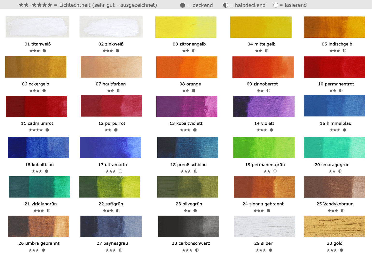 QUALITÄT: Feinste Magi Ölfarben zeichnen sich durch eine sehr gute Pigmentierung und hohe Farbbrillanz aus. Alle Farben haben eine sehr gute bis ausgezeichnete Lichtechtheit, sind sehr lichtbeständig und strahlen in besonderem Glanz. Bei vielen Tönen handelt es sich um reine 1-Pigment-Farben für höchsten künstlerischen Anspruch. Die Ölfarben sind auf Schadstoffgehalt geprüft, garantiert ohne Lösungsmittel und haben einen angenehmen Geruch.