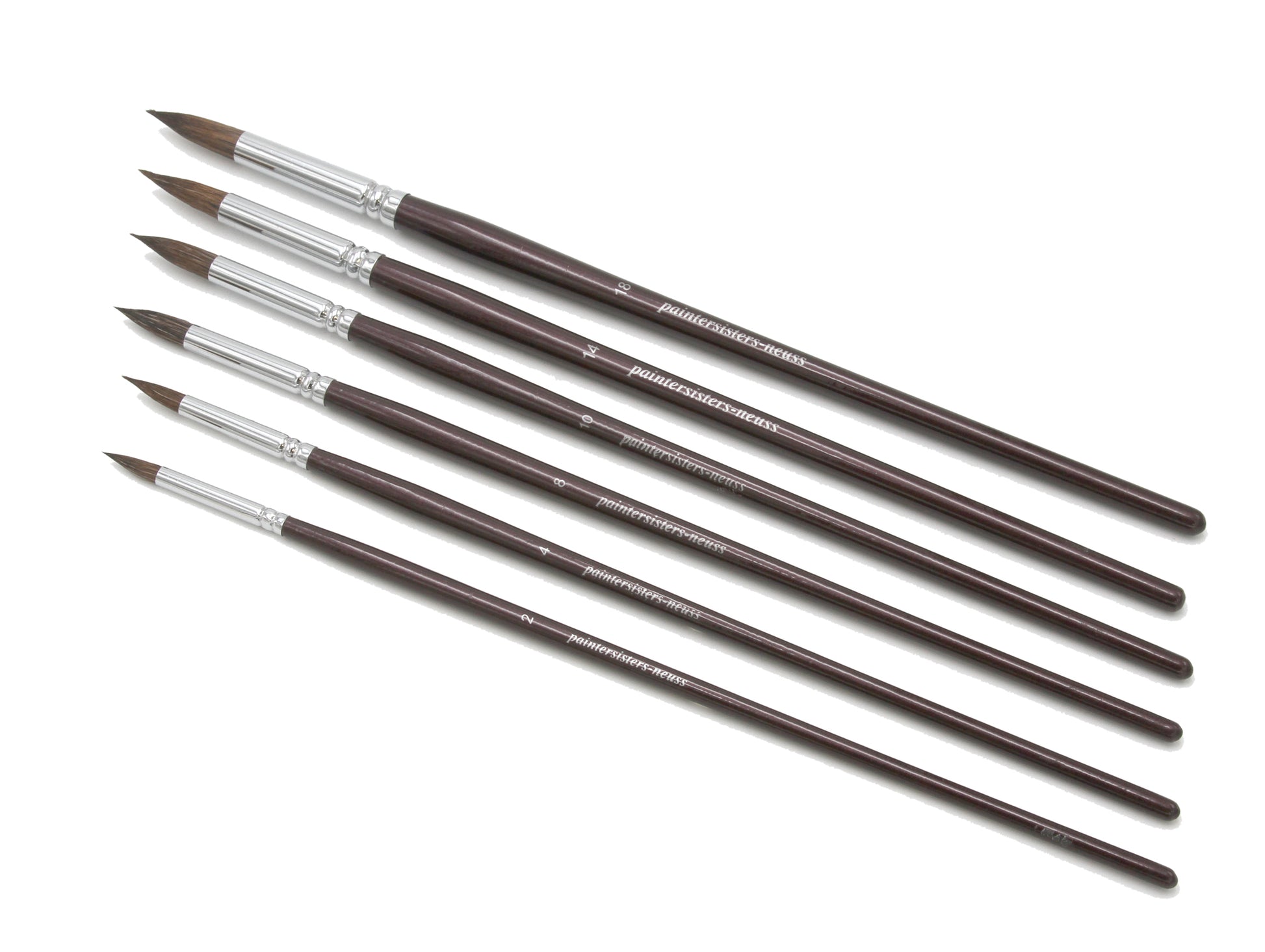 - Set 2 - Naturhaar - runde Spitzen: Pinselhaar und Stiel wie Set 1, für alle Acryl- und Ölfarben